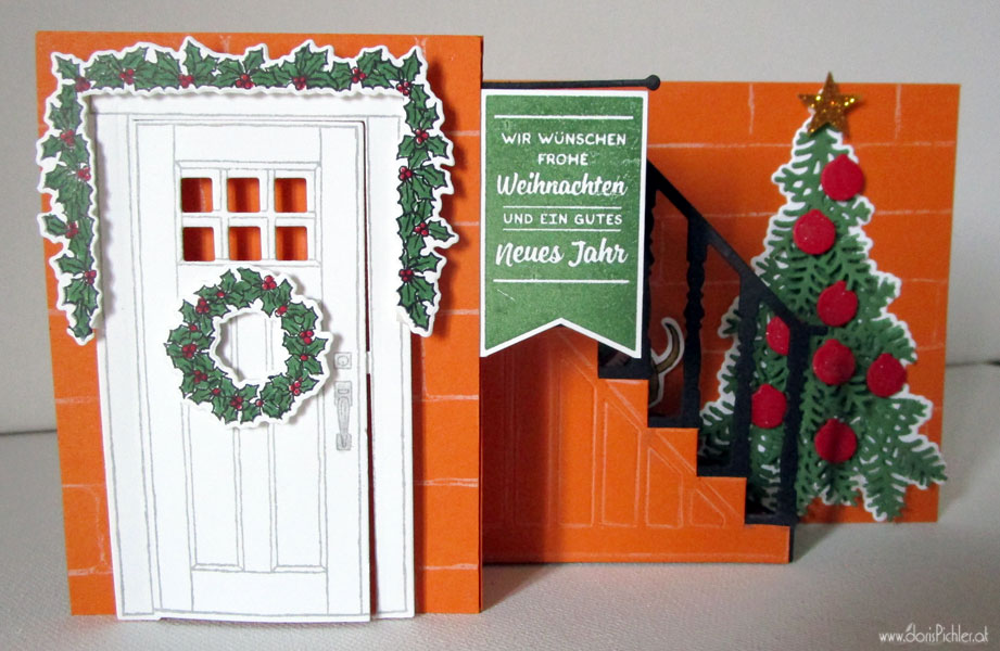 Als ich das Produktset „Vorfreude“ das erste Mal gesehen habe, war ich sofort Feuer und Flamme. Dieser Stiegenaufgang – einfach perfekt für mir meine Z-Falz-Stufenkarten. Die Umsetzung hat aber leider etwas gedauert, die Produkte für den Adventmarkt hatten einfach Vorrang …
